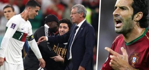 شن لويس فيجو، النجم البرتغالي السابق، هجومًا على المدير الفني للمنتخب، فرناندو سانتوس، بعد الخروج من بطولة كأس العالم، على يد المغرب، أمس.